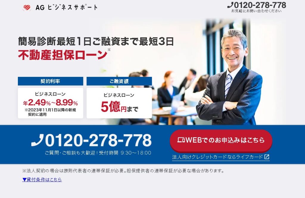 AGビジネスサポート「不動産担保ローン」は事業融資に対応したキャッシングサービスです。事業性専門融資の会社として、年間6,000件以上の成約実績があります。
