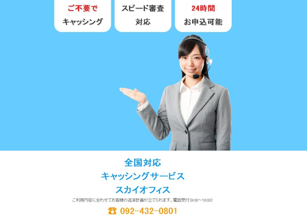 スカイオフィスは最短30分で借り入れが可能なキャッシングローンです。インターネットから申し込むことができ、9:00~14:00までに申込むと、即日審査に対応してくれます。