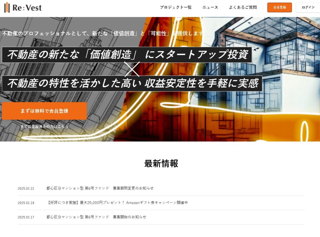 Re:Vestは、総合不動産企業の株式会社リバイブルが展開するクラウドファンディングサービスです。
