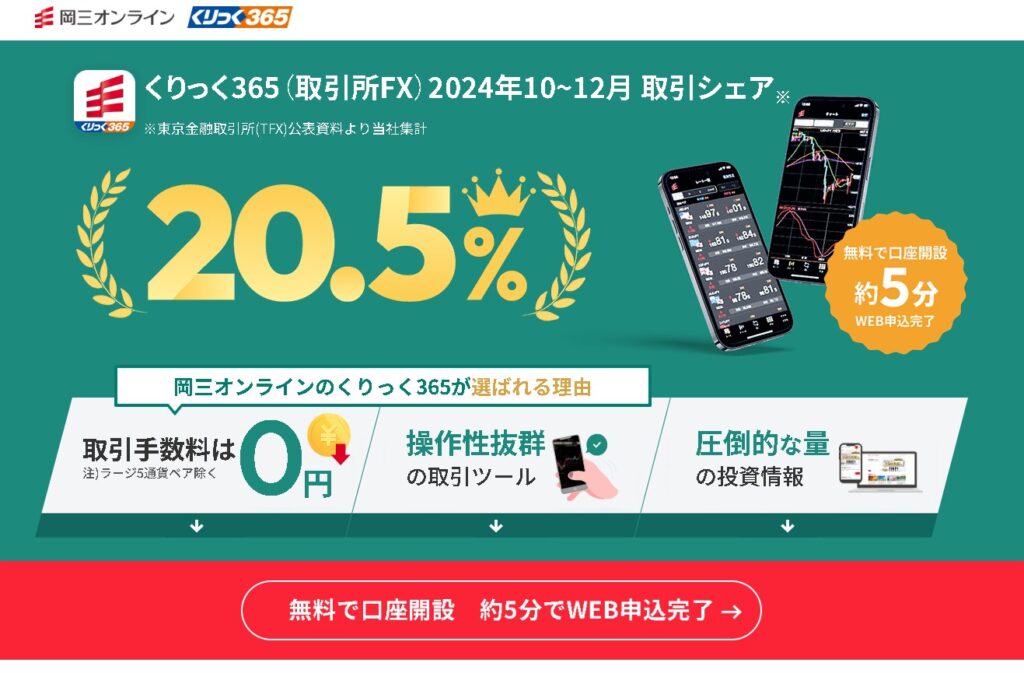 くりっく365は、日本初の公的な取引所FXとして東京金融取引所に上場しており、岡三オンライン【くりっく365】は、くりっく365取引口座を岡三オンラインに開設してFX取引を行うものです。