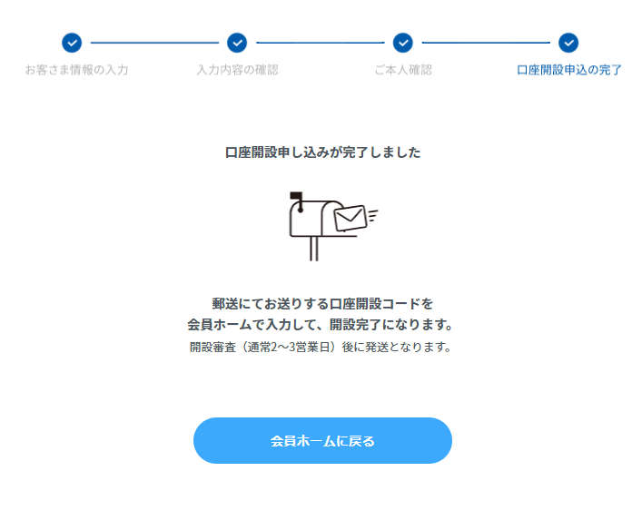 口座を開設するには、以下の手順を踏みます。