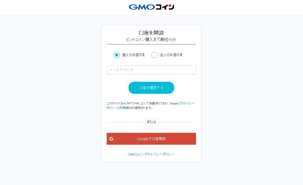 まず、GMOコインのサイトにアクセスして、新規口座開設の申し込みを行います。