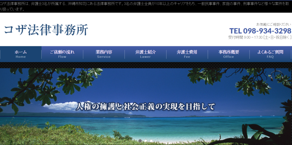 とうま法律事務所![]() | お問合せ | 相談有料 | ★★★ 弁護士 法人 | 沖縄市 |